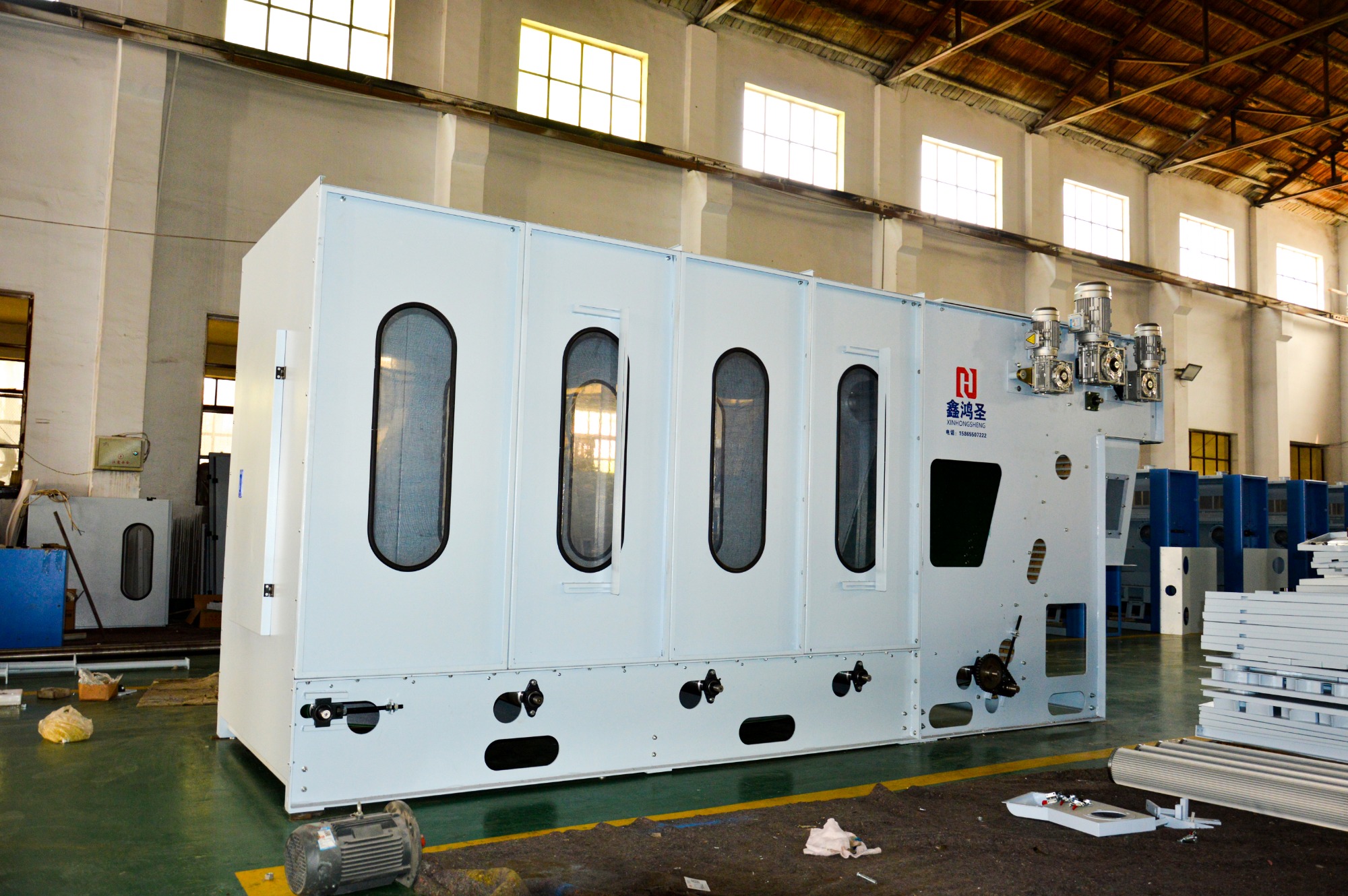 無膠棉設(shè)備/無膠棉生產(chǎn)線、硬質(zhì)棉生產(chǎn)線、主要生產(chǎn)無膠棉、仿絲棉、薄型硬質(zhì)棉。烘房鏈條,簾棒夾持進(jìn)網(wǎng)。用特氟龍網(wǎng)包覆。上層可電動(dòng)升降,主要用于床上用服裝家具、汽車、沙發(fā)等高級(jí)填充料。平均克重在40g-400g,門幅在0.5m-3.4m。